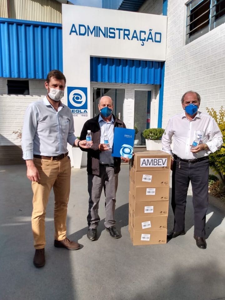 A empresa Zegla Indústria de Máquinas de Bebidas Ltda. realizou a doação de 252 frascos de álcool em gel ao Município de Santa Tereza. A doação, realizada na tarde desta segunda-feira, 11 de maio, pelo proprietário Antônio Carlos Stringhini e pelo Diretor Executivo, Arthur M. Stringhini, foi recebida pelo Prefeito Gilnei Fior.