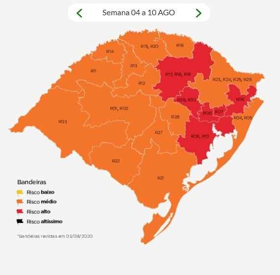 Santa Tereza cumprirá determinações previstas na Bandeira Laranja, considerando a classificação do município no Modelo de Distanciamento Controlado do Rio Grande do Sul, a contar de 04 de agosto de 2020.