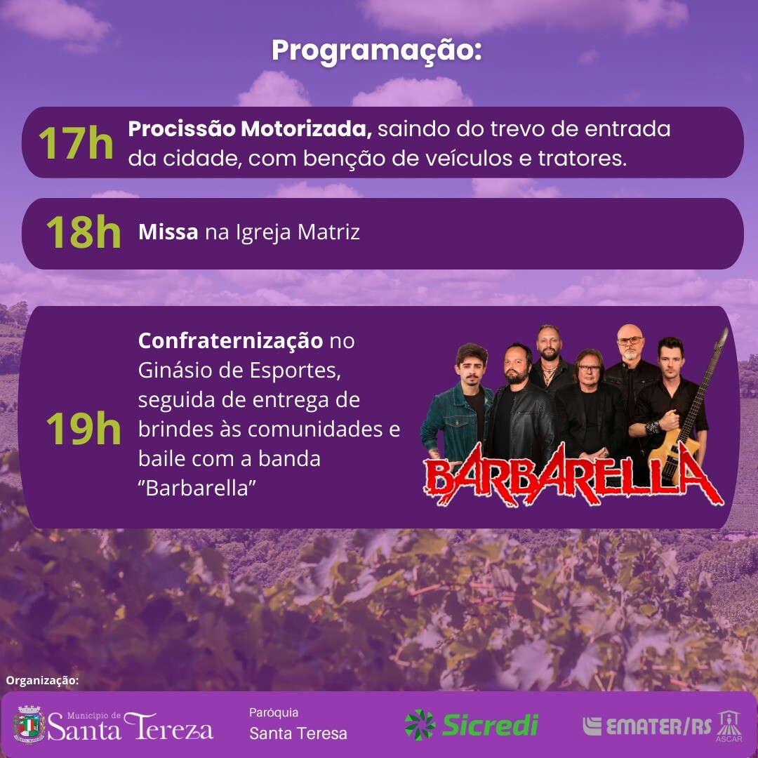 🎉Vem aí a tradicional Festa do(a) Agricultor(a) e do(a) Motorista de Santa Tereza!