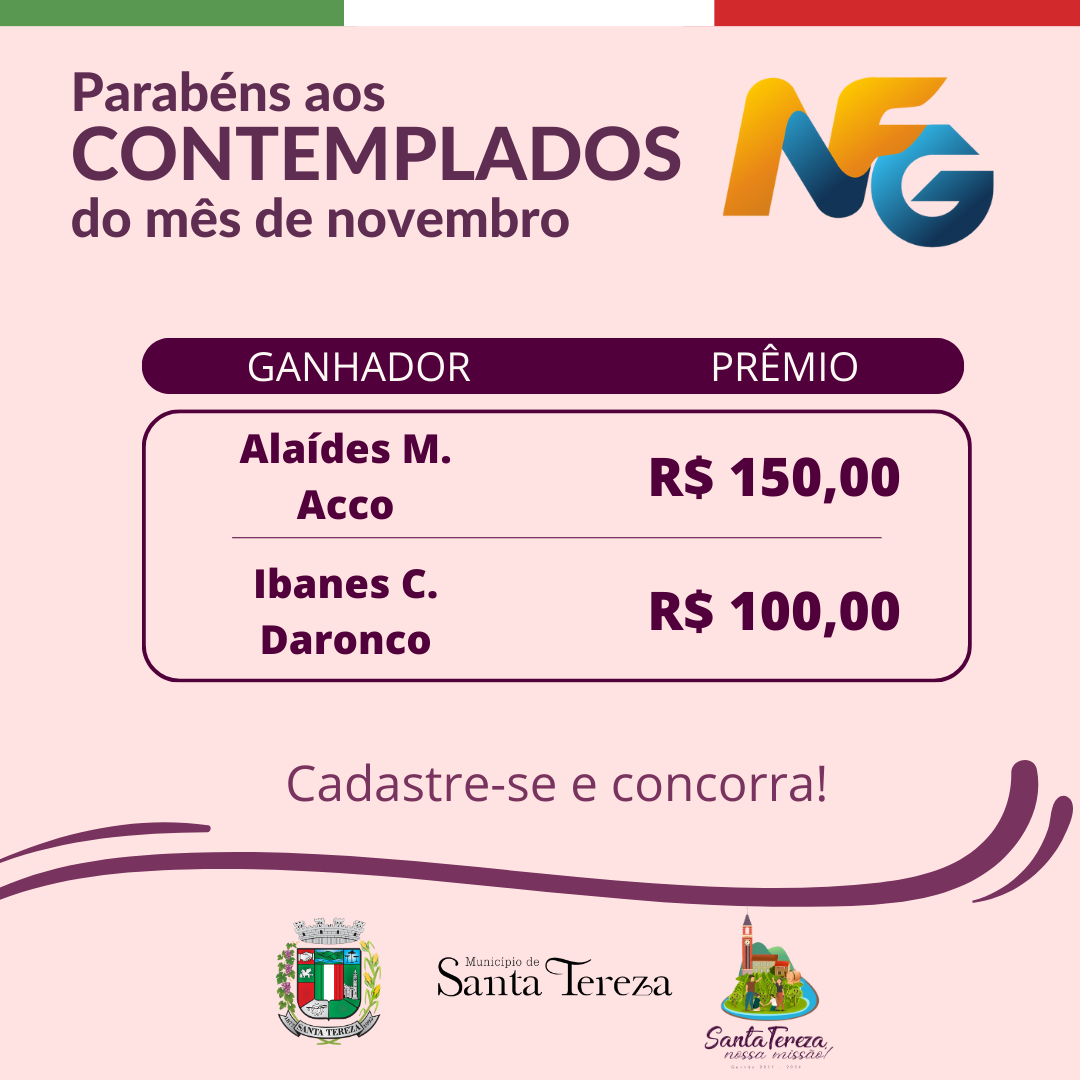Confira os ganhadores do Programa Nota Fiscal Gaúcha, no mês de novembro.