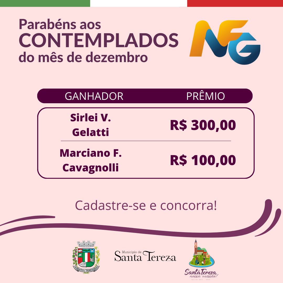 Confira os ganhadores do Programa Nota Fiscal Gaúcha, no mês de dezembro.