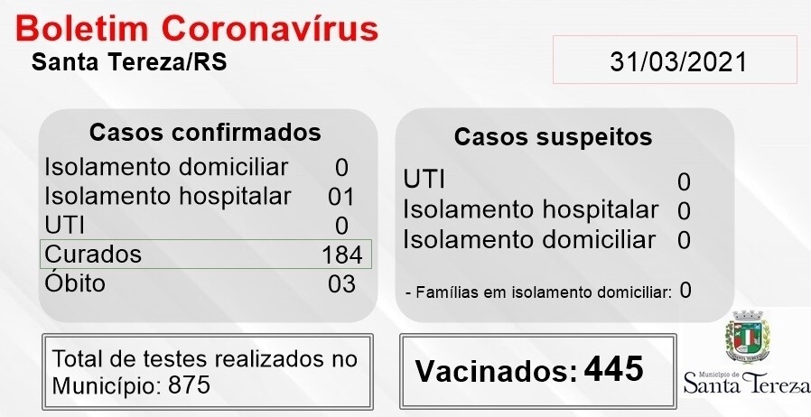 BOLETIM CORONAVÍRUS - 31/03/2021